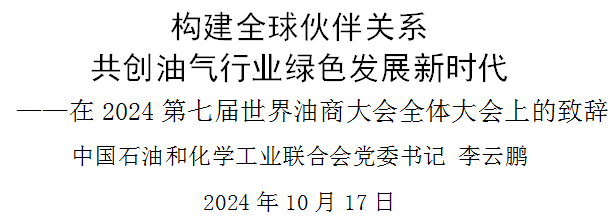 石化聯合會黨委書記李云鵬:構建全球伙伴關系 共創(chuàng)油氣行業(yè)綠色發(fā)展新時代