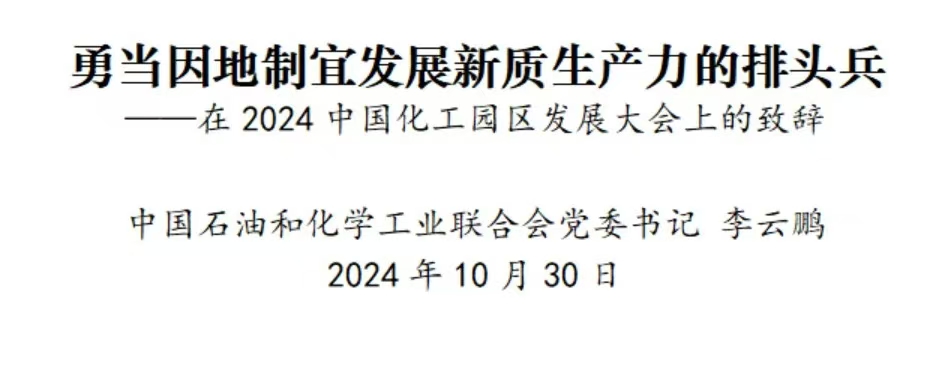 10月30日,2024中國化工園區(qū)發(fā)展大會(huì)在成都圓滿召開。本次大會(huì)得到了四川省委省政府、四川省經(jīng)濟(jì)和信息化廳、成都市人民政府、彭州市人民政府、成都新材料產(chǎn)業(yè)功能區(qū)管委會(huì)、AICM的高度重視和大力支持。會(huì)上,中國石油和化學(xué)工業(yè)聯(lián)合會(huì)黨委書記李云鵬作了題為《勇當(dāng)因地制宜發(fā)展新質(zhì)生產(chǎn)力的排頭兵》的致辭。現(xiàn)全文刊發(fā)如下: