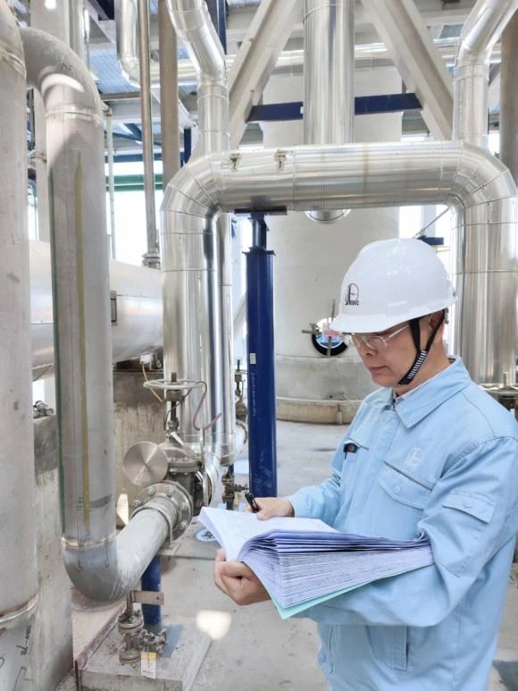 石科院科研人員在湖南石化5萬噸/年環(huán)保型環(huán)氧氯丙烷工業(yè)示范裝置建設(shè)現(xiàn)場參加“三查四定”工作 攝影/孫乾輝