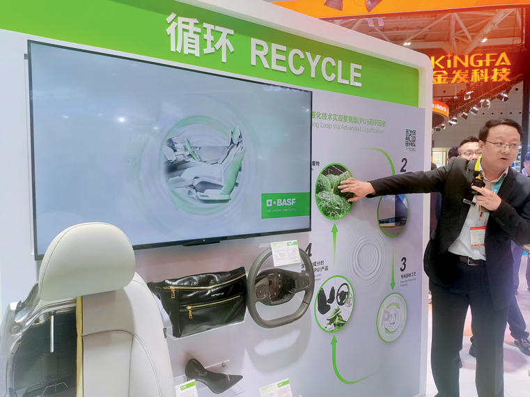 ▲ 圖為巴斯夫公司用循環(huán)可再生塑料制成的汽車配件