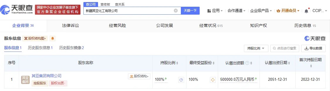 通過天眼查獲悉,新疆其亞新材料有限公司系其亞新疆集團(tuán)的全資子公司,負(fù)責(zé)600萬噸/年煤基甲醇項目的建設(shè)實施。這也是目前公開報道建設(shè)實施的國內(nèi)最大規(guī)模煤基甲醇項目。