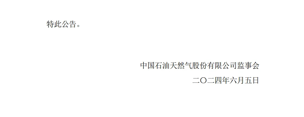 6月5日,中國石油發(fā)布公告稱,公司監(jiān)事會會議于6月5日召開。監(jiān)事會審議通過了《關(guān)于選舉公司監(jiān)事會主席的議案》,并形成決議。經(jīng)全體與會監(jiān)事表決,一致同意選舉周松先生為公司監(jiān)事會主席。