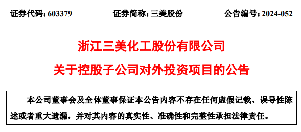 浙江三美化工子公司將投資新建氟化工一體化項(xiàng)目