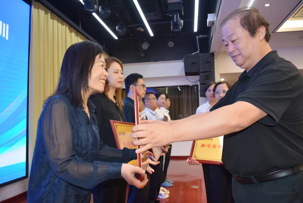圖為報(bào)社副總經(jīng)理王勇向新聞宣傳工作先進(jìn)單位頒獎(jiǎng)(趙晨光/攝)。