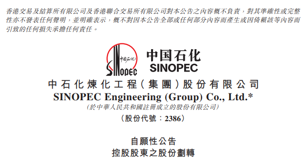 中國石化向中國石油劃轉(zhuǎn)煉化工程公司股份
