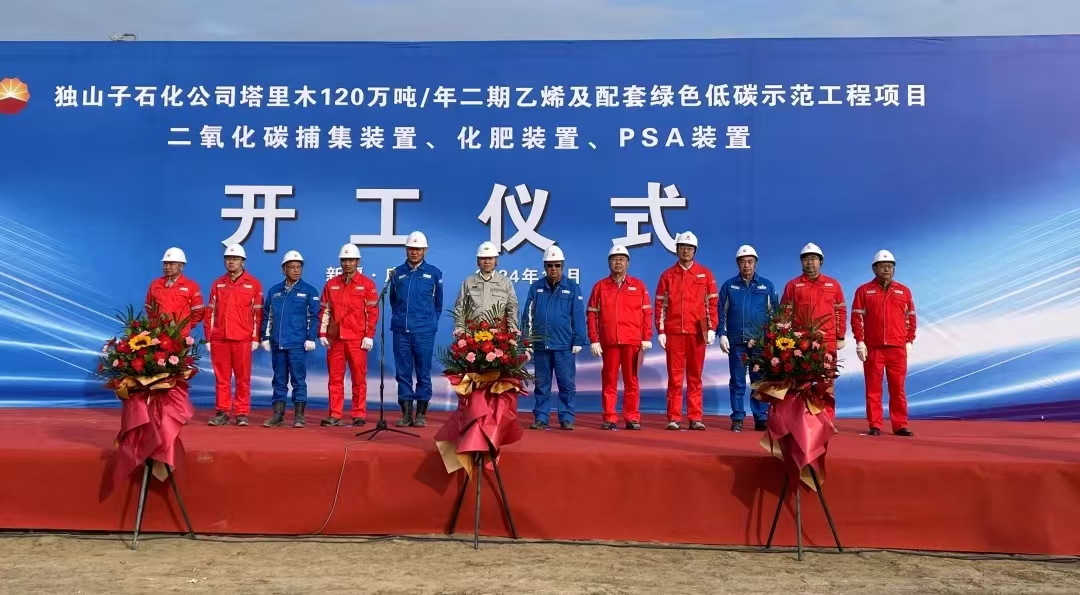 11月9日上午,獨(dú)山子石化公司塔里木120萬噸/年二期乙烯及配套綠色低碳示范工程項目二氧化碳捕集裝置、化肥裝置、PSA裝置開工儀式在項目現(xiàn)場隆重舉行。獨(dú)山子石化公司副總經(jīng)理、塔里木二期項目常務(wù)副指揮李冀致辭并宣布開工。公司黨委書記、執(zhí)行董事曹陽出席儀式,并作表態(tài)發(fā)言。
