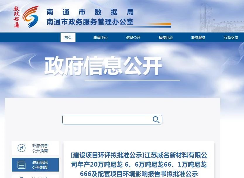 江蘇威名新材料有限公司年產(chǎn)20萬噸尼龍6、6萬噸尼龍66、1萬噸尼龍666及配套項目環(huán)境影響報告書擬批準(zhǔn)公示。