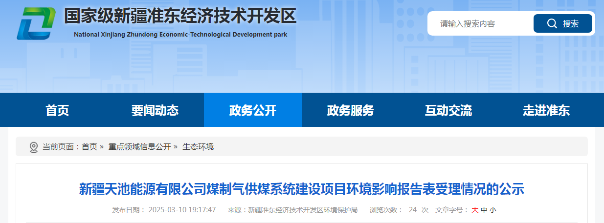 新疆天池能源煤制氣供煤系統(tǒng)建設(shè)項(xiàng)目環(huán)境影響報(bào)告受理