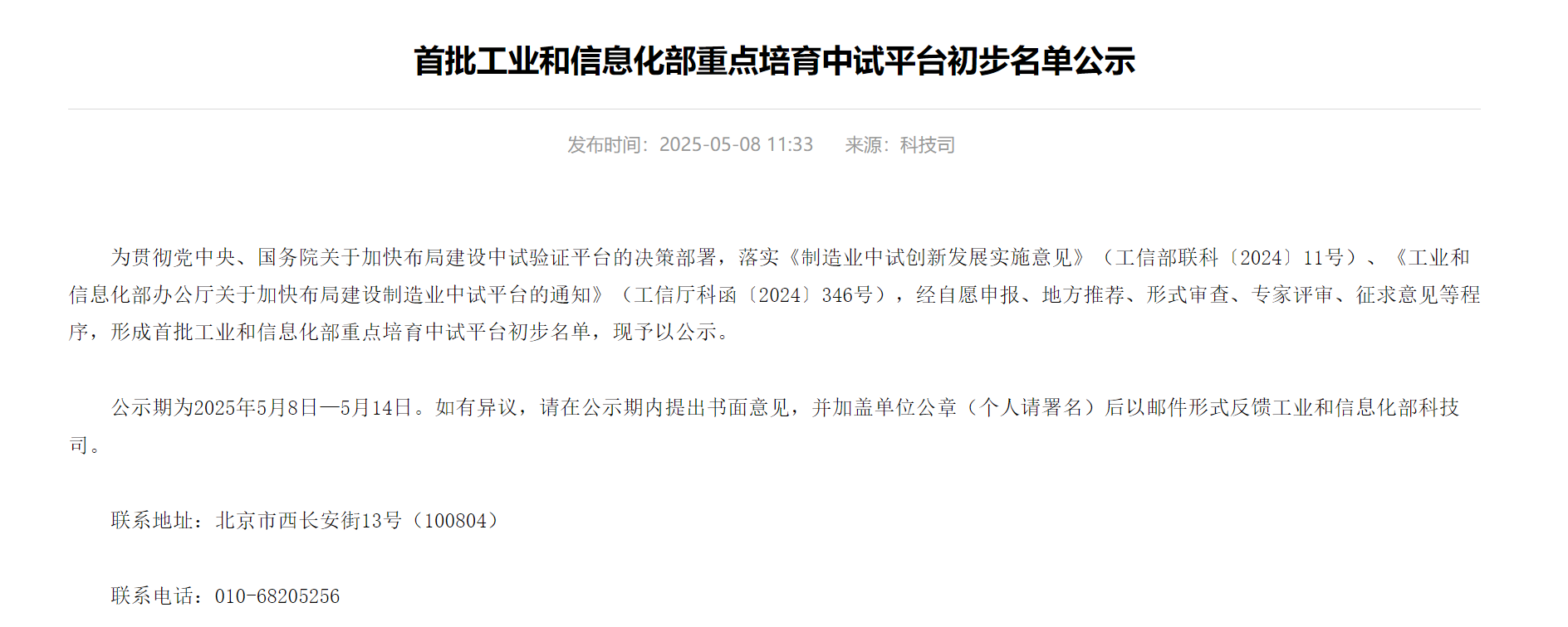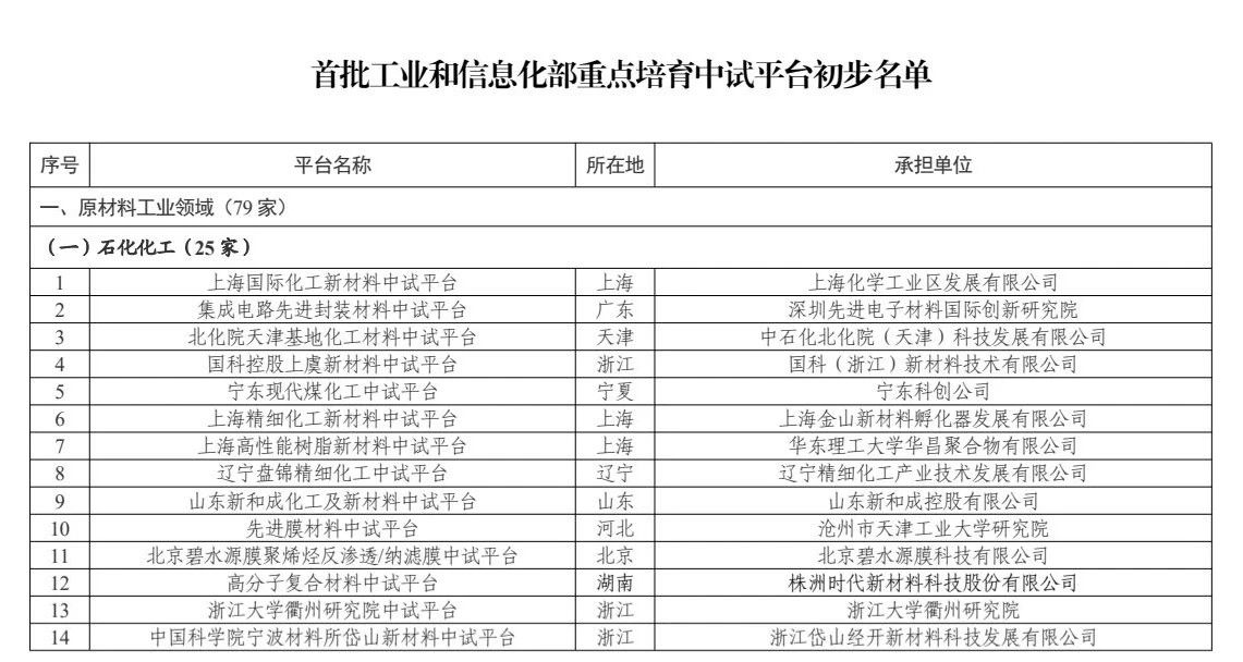 工信部發(fā)布首批工業(yè)和信息化部重點(diǎn)培育中試平臺初步名單