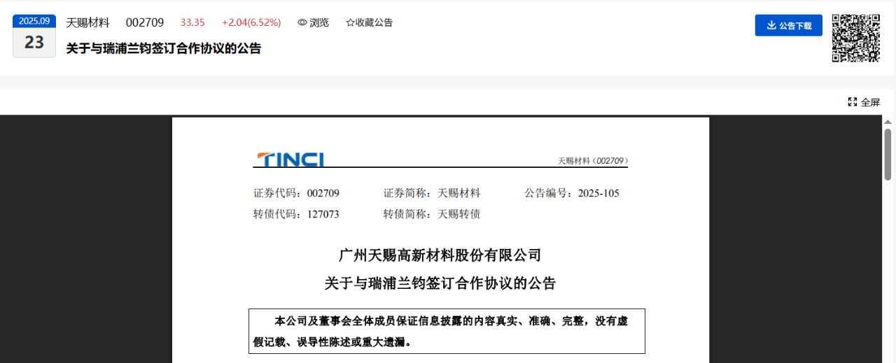 天賜材料于9月23日發(fā)布2條公告。其中一條公告為,公司向香港聯交所遞交H股發(fā)行上市申請,另一條為與瑞浦蘭鈞簽訂合作協議的公告。