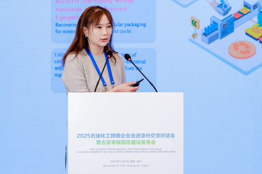 在隨后的主旨發(fā)言環(huán)節(jié),多位嘉賓分享了前沿成果與典型案例。中國石化聯(lián)合會國際交流處處長滿娟展示了“無廢城市”政策框架下從源頭減量、分類回收到海陸協(xié)同治理的綜合路徑。