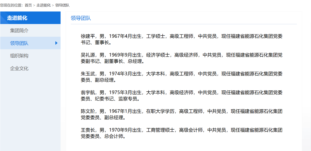 福建省能源石化集團(tuán)領(lǐng)導(dǎo)團(tuán)隊匯總