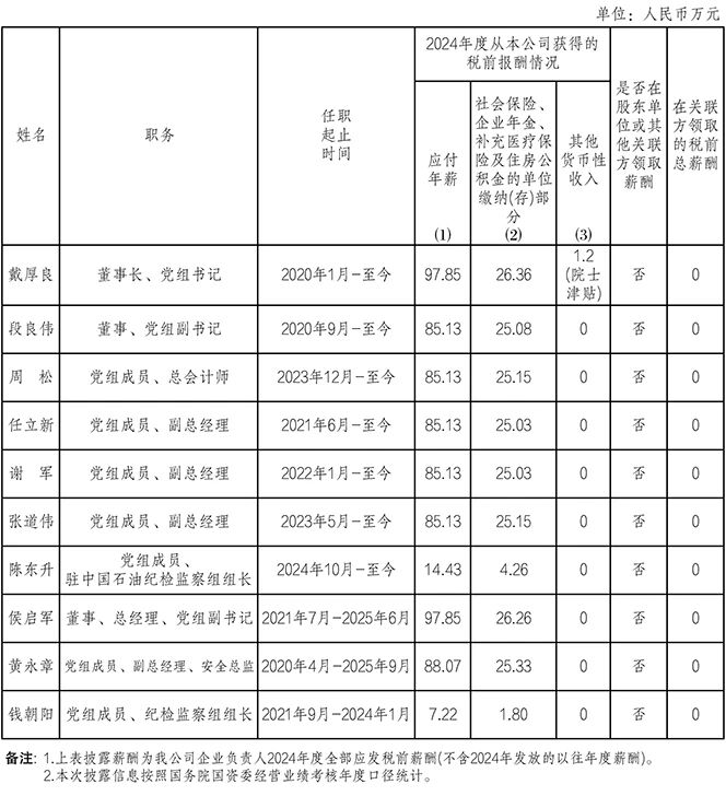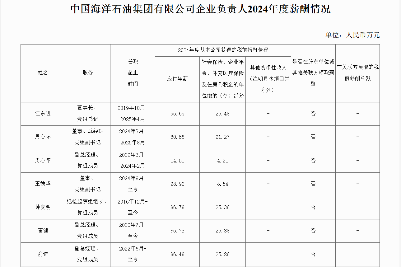 1月14日,國務(wù)院國資委網(wǎng)站通過提供各中央企業(yè)薪酬信息披露網(wǎng)頁鏈接的方式,披露了所監(jiān)管的80多家央企負(fù)責(zé)人2024年度薪酬信息。這是國資央企持續(xù)抓好重點(diǎn)領(lǐng)域信息公開、回應(yīng)公眾關(guān)心關(guān)切的重要舉措?,F(xiàn)匯總中國石油、中國石化、中國海油、國家管網(wǎng)、國家能源、中國化學(xué)、中國中化的相關(guān)信息如下。