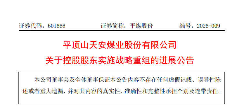 平煤股份于2025年9月26日發(fā)布了《關(guān)于控股股東擬實(shí)施戰(zhàn)略重組的提示性公告》(公告編號(hào):2025-078),河南省委、省政府決定對(duì)河南能源集團(tuán)有限公司和中國(guó)平煤神馬控股集團(tuán)有限公司(實(shí)施戰(zhàn)略重組。2025年11月11日,公司發(fā)布了《關(guān)于控股股東擬實(shí)施戰(zhàn)略重組的進(jìn)展公告》(公告編號(hào):2025-087),河南省國(guó)資委與河南能源集團(tuán)、中國(guó)平煤神馬集團(tuán)已簽署《戰(zhàn)略重組框架協(xié)議》。