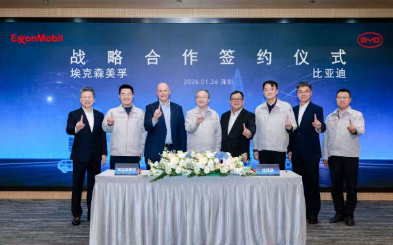 2026年1月26日,埃克森美孚(中國(guó))投資有限公司(以下簡(jiǎn)稱“??松梨谥袊?guó)”)在深圳比亞迪總部與其簽署長(zhǎng)期戰(zhàn)略合作備忘錄,標(biāo)志著雙方在新能源混動(dòng)技術(shù)領(lǐng)域邁入全新合作階段。比亞迪集團(tuán)董事長(zhǎng)兼總裁王傳福、比亞迪集團(tuán)副總裁兼第二十一事業(yè)部總經(jīng)理任林,埃克森美孚全球潤(rùn)滑油業(yè)務(wù)總裁賀達(dá)威、??松梨诒眮啙?rùn)滑油業(yè)務(wù)總裁張松彬等雙方高層齊聚,就未來合作方向展開深入交流,共同探索面向未來的混動(dòng)技術(shù)生態(tài),致力于為全球用戶帶來更高效、更可靠的新能源解決方案。