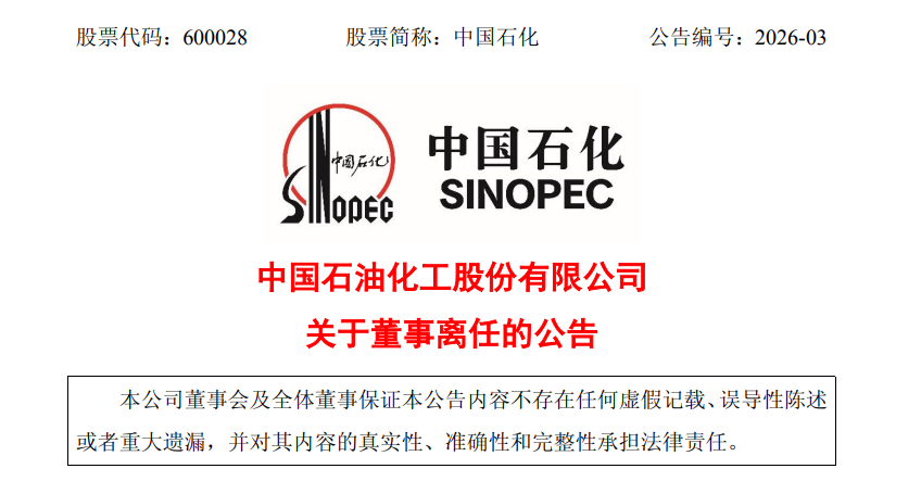 近日,中國石化發(fā)布公告稱,中國石油化工股份有限公司董事會于2026年2月13日收到李永林先生的辭職報告。