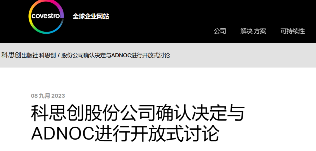 9月8日,科思創(chuàng)發(fā)布新聞,公開表態(tài)確認就ADNOC收購一事進行開放式討論。科思創(chuàng)管理委員會還將特別討論如何保障進一步實施以未來和可持續(xù)發(fā)展為導(dǎo)向的公司戰(zhàn)略,包括相應(yīng)的公司管理規(guī)定。
