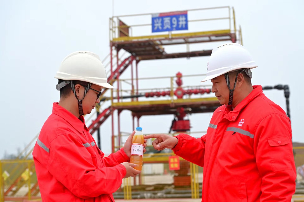 科研人員正在進(jìn)行興頁9井的現(xiàn)場油樣分析