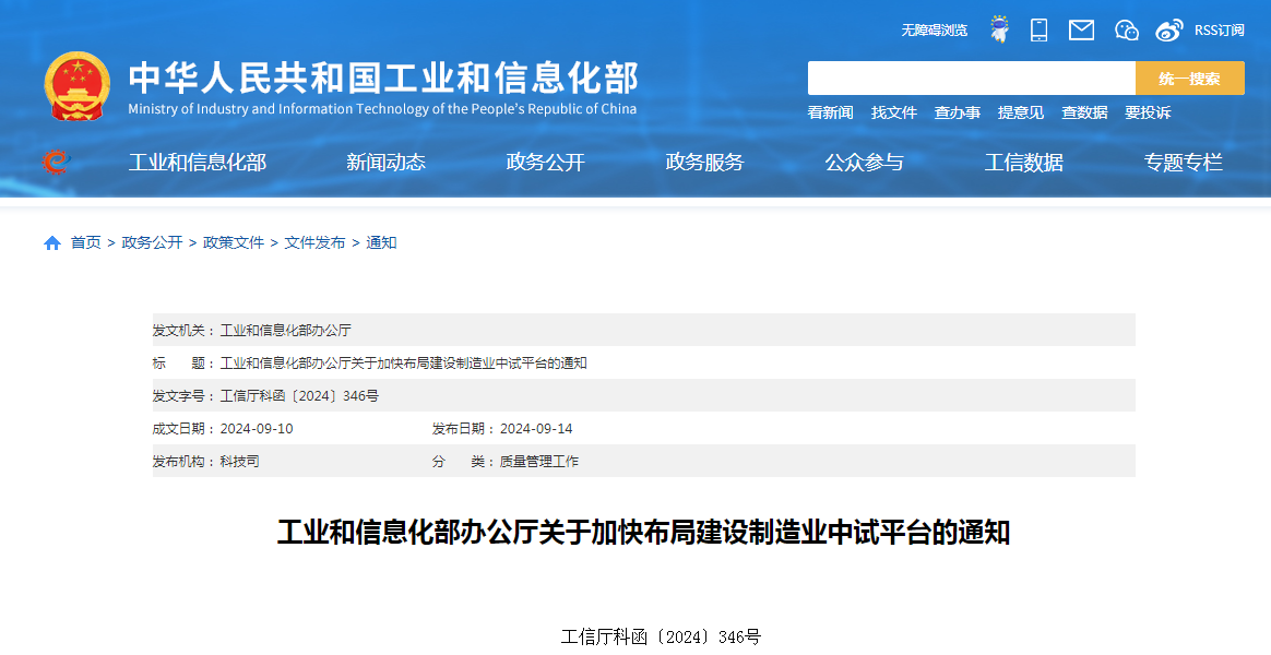 為深入貫徹黨中央、國務(wù)院決策部署,落實《制造業(yè)中試創(chuàng)新發(fā)展實施意見》(工信部聯(lián)科〔2024〕11號),加快布局建設(shè)一批制造業(yè)高質(zhì)量發(fā)展急需的中試驗證平臺(以下簡稱中試平臺),提高科技成果轉(zhuǎn)化和產(chǎn)業(yè)化水平,現(xiàn)將有關(guān)工作通知如下: