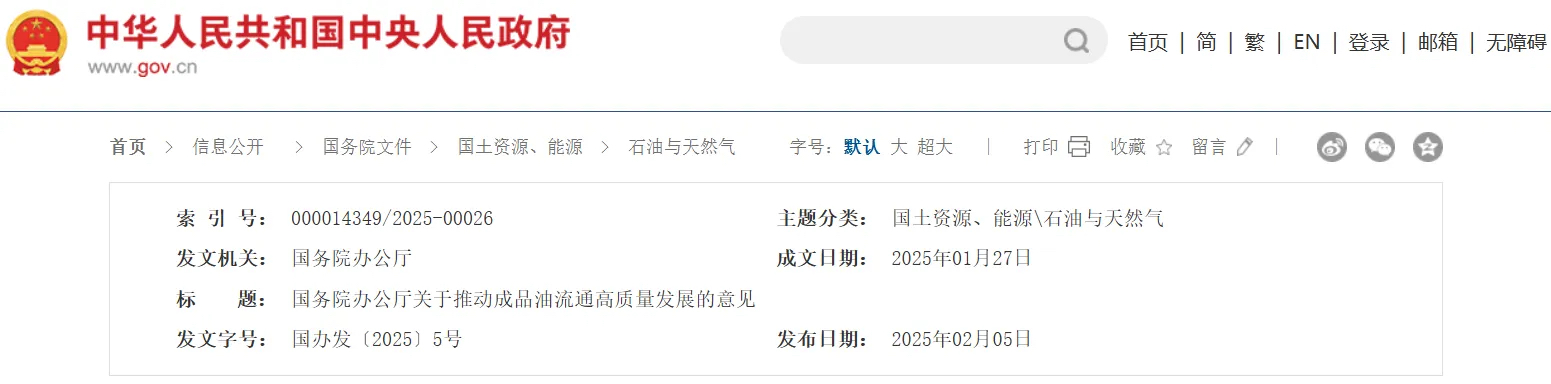 國務(wù)院辦公廳印發(fā)《關(guān)于推動(dòng)成品油流通高質(zhì)量發(fā)展的意見》