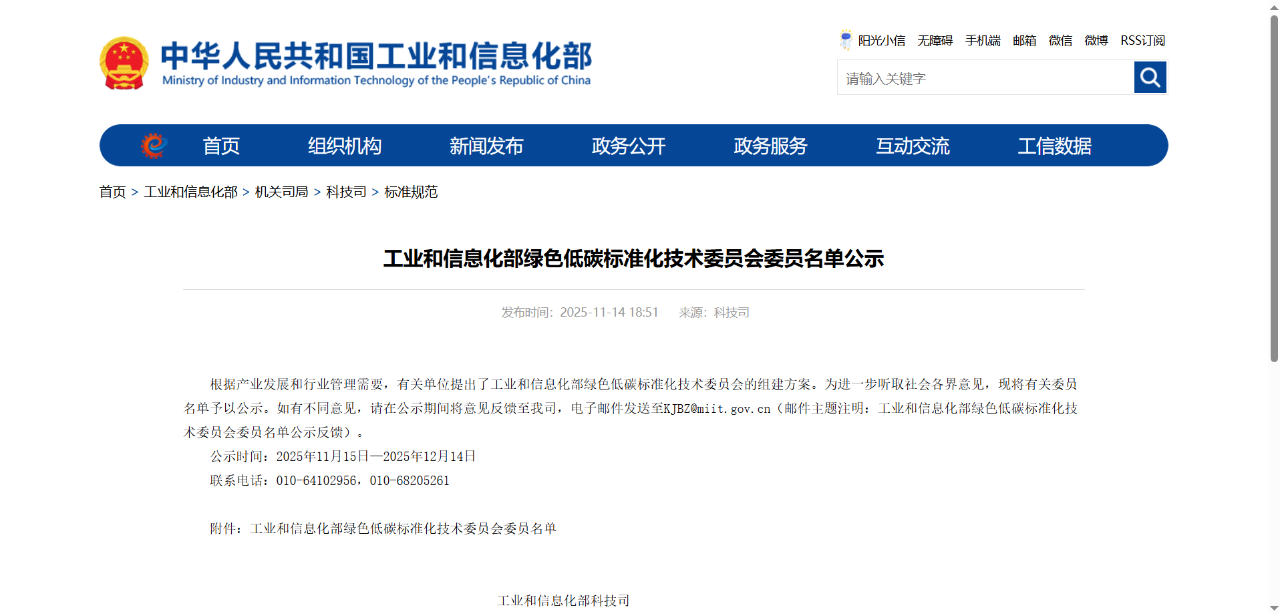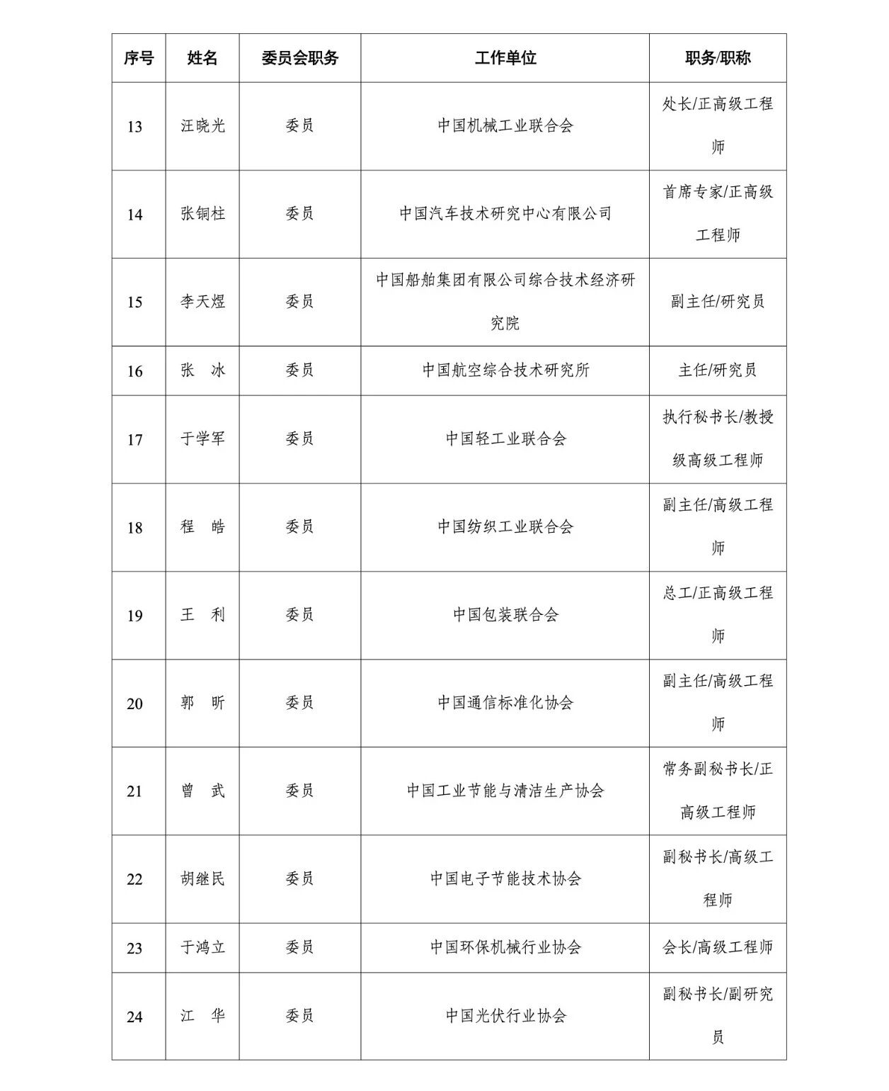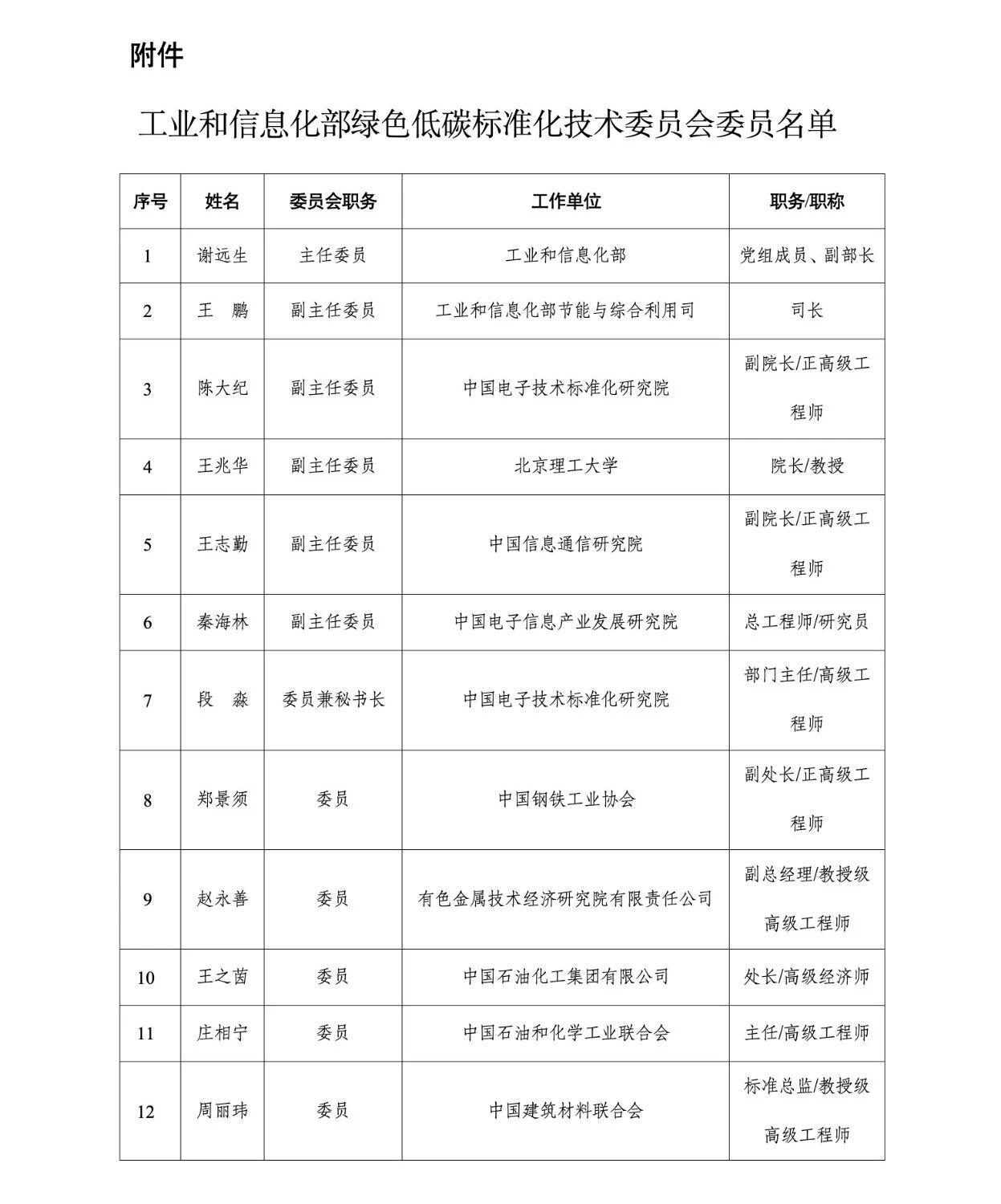 工業(yè)和信息化部綠色低碳標(biāo)準(zhǔn)化技術(shù)委員會(huì)委員名單公示