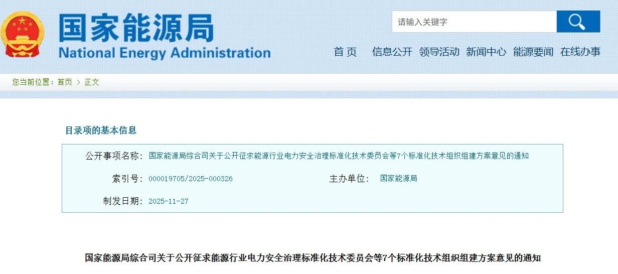 根據(jù)《能源標(biāo)準(zhǔn)化管理辦法及實(shí)施細(xì)則》《國家能源局關(guān)于進(jìn)一步完善能源行業(yè)標(biāo)準(zhǔn)化技術(shù)委員會管理的通知》,我局?jǐn)M批準(zhǔn)組建能源行業(yè)電力安全治理標(biāo)準(zhǔn)化技術(shù)委員會、能源行業(yè)電力溫室氣體排放管理標(biāo)準(zhǔn)化技術(shù)委員會、能源行業(yè)二氧化碳捕集運(yùn)輸利用與封存標(biāo)準(zhǔn)化技術(shù)委員會、能源行業(yè)氫能基礎(chǔ)與通用標(biāo)準(zhǔn)化技術(shù)委員會、能源行業(yè)氫能制取標(biāo)準(zhǔn)化技術(shù)委員會、能源行業(yè)氫能儲存與運(yùn)輸標(biāo)準(zhǔn)化技術(shù)委員會、能源行業(yè)氫能應(yīng)用標(biāo)準(zhǔn)化技術(shù)委員會?,F(xiàn)就以上標(biāo)準(zhǔn)化技術(shù)委員會的組建方案公開征求意見,征求意見截止時(shí)間為2025年12月28日,請以書面形式將意見通過電子郵件反饋至nb_standard@126.com。