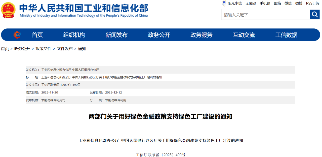 工信部與中國人民銀行聯(lián)合印發(fā)《關(guān)于用好綠色金融政策支持綠色工廠建設(shè)的通知》