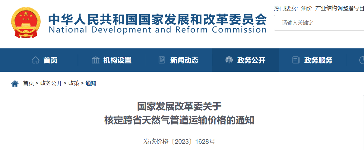 國家發(fā)展改革委關于核定跨省天然氣管道運輸價格的通知