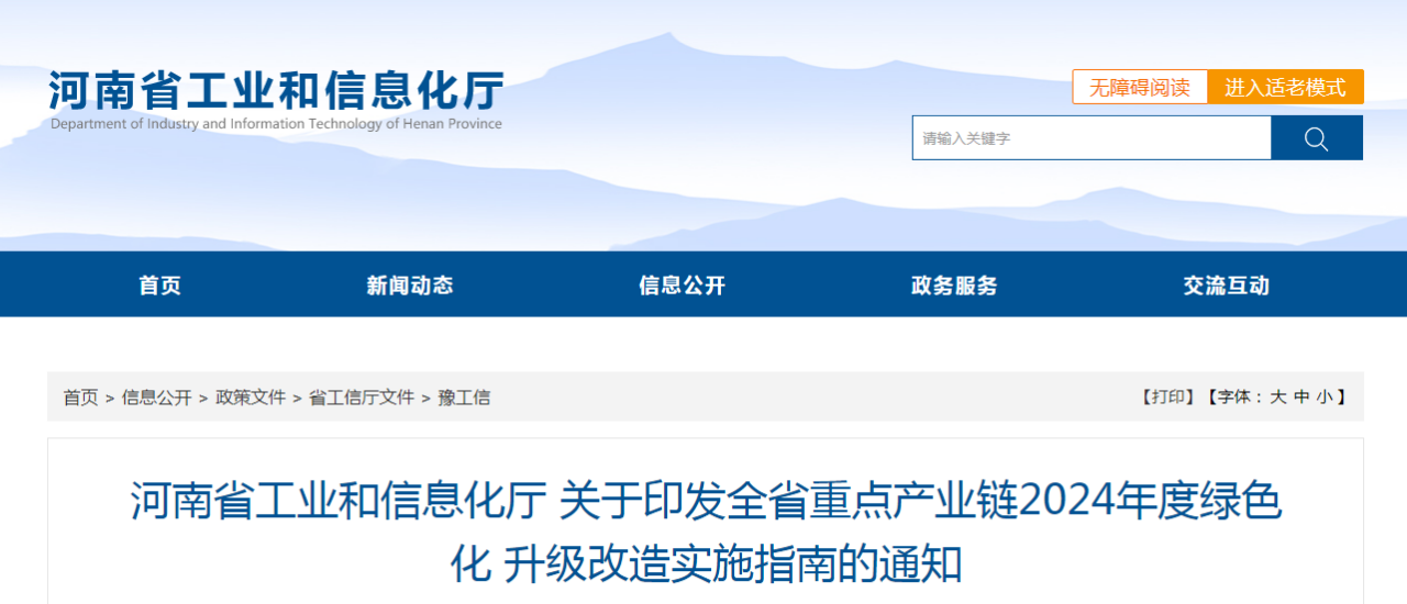 2月21日消息,河南省工業(yè)和信息化廳發(fā)布《關(guān)于印發(fā)全省重點(diǎn)產(chǎn)業(yè)鏈2024年度綠色化升級(jí)改造實(shí)施指南的通知》。
