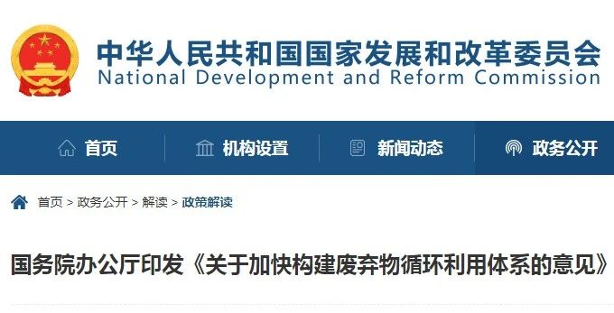 國務(wù)院辦公廳印發(fā)《關(guān)于加快構(gòu)建廢棄物循環(huán)利用體系的意見》(附政策解讀)
