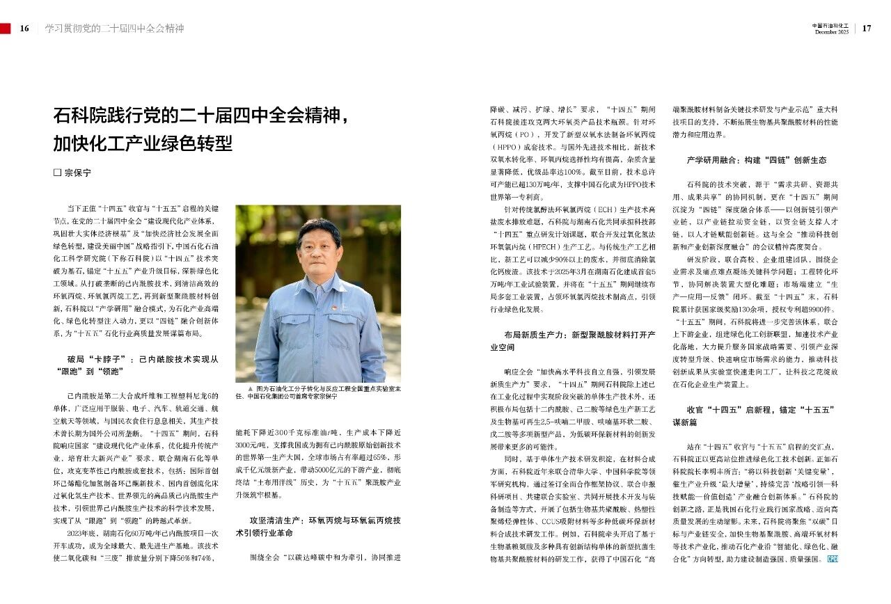 石科院踐行黨的二十屆四中全會精神,加快化工產(chǎn)業(yè)綠色轉(zhuǎn)型
