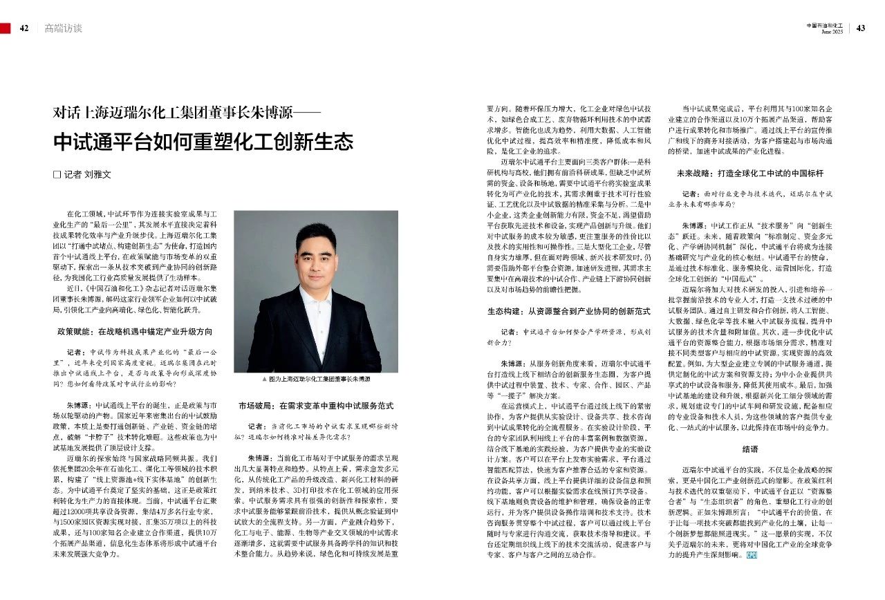 中試通平臺(tái)如何重塑化工創(chuàng)新生態(tài)——對(duì)話上海邁瑞爾化工集團(tuán)董事長(zhǎng)朱博源