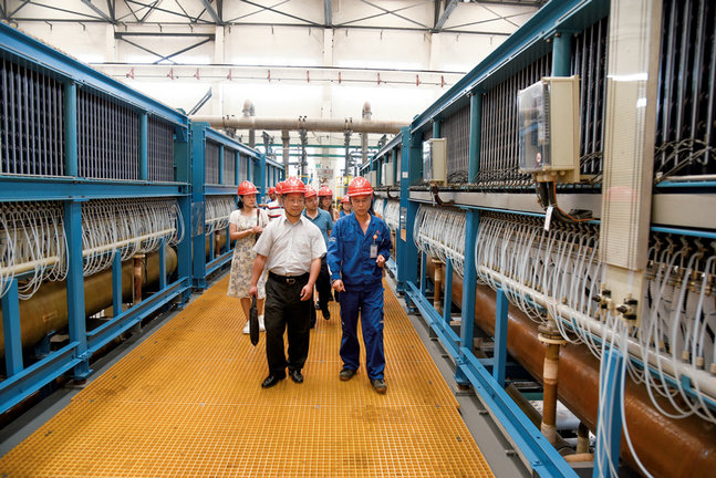 “2022年離子膜燒堿30%堿、50%堿和聚氯乙烯單位產(chǎn)品能耗均達(dá)到所在行業(yè)單位產(chǎn)品能耗限額先進(jìn)值。對照《工業(yè)重點領(lǐng)域能效標(biāo)桿水平和基準(zhǔn)水平(2023 年版)》,30%堿、50%堿、聚氯乙烯三個產(chǎn)品的單位產(chǎn)品能耗均優(yōu)于標(biāo)桿水平。”在四川永祥(樹脂)有限公司,當(dāng)工作人員介紹公司節(jié)能降碳取得的驕人成績時,調(diào)研組和同行人員紛紛稱贊。