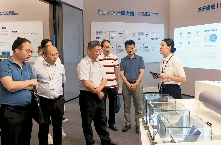 在永祥新能源數(shù)字體驗中心,展柜中的幾塊黑灰色晶硅吸引了調(diào)研組的目光。“這是我們公司使用自主研發(fā)的‘永祥法’生產(chǎn)出來的高純晶硅,純度達(dá)99.999999999%,技術(shù)和質(zhì)量指標(biāo)行業(yè)領(lǐng)先。” 四川永祥股份有限公司總經(jīng)理助理代長宏向調(diào)研組介紹道。
