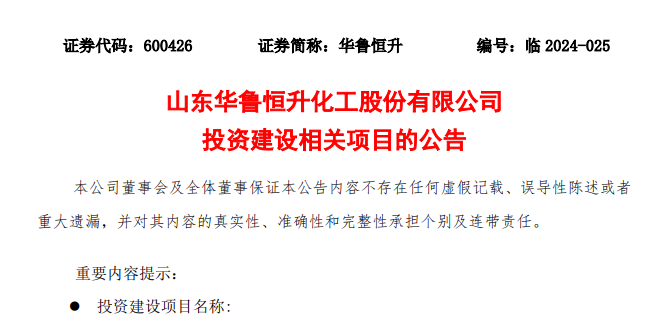 總投資17億元!華魯恒升將建兩項(xiàng)目