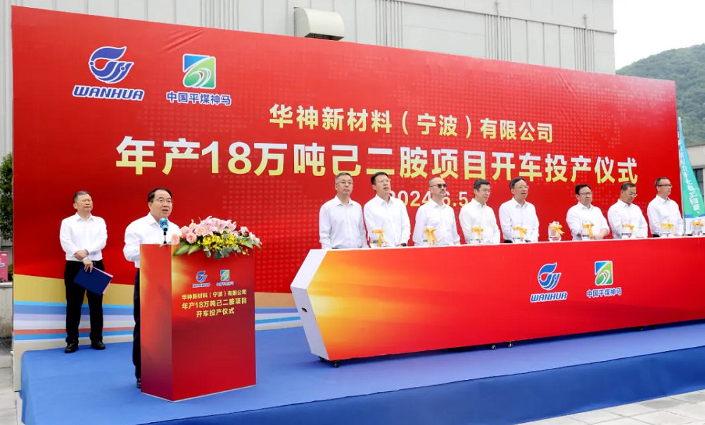 2022年7月25日,華神新材料(寧波)有限公司年產(chǎn)18萬噸己二胺項(xiàng)目開工儀式在萬華寧波工業(yè)園舉行。