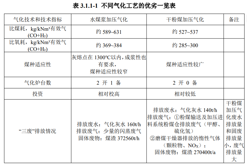 本次變更對氣化工藝進(jìn)行調(diào)整,氣化工藝由原來的水煤漿加壓氣化工藝變更為干粉煤加壓氣化工藝。