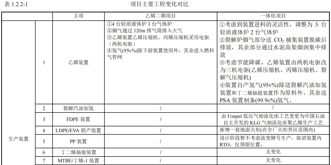 如下為項(xiàng)目變更前后的生產(chǎn)裝置情況對(duì)比: