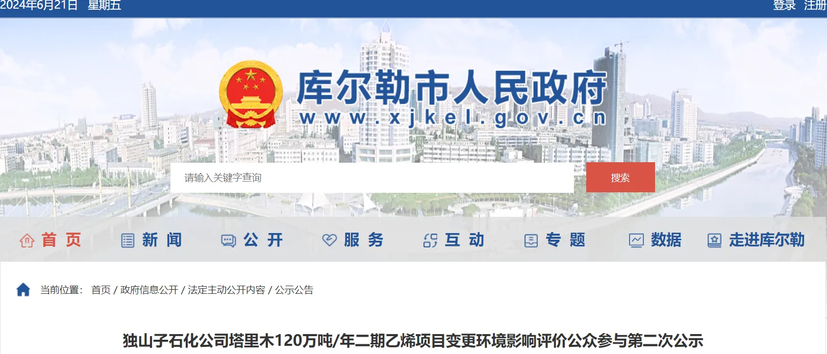 6月20日,塔里木120萬噸/年二期乙烯項(xiàng)目進(jìn)行了項(xiàng)目變更環(huán)評(píng)第二次公示。