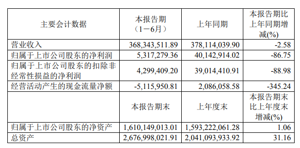 上半年,公司主要業(yè)績?nèi)缦拢?/p>