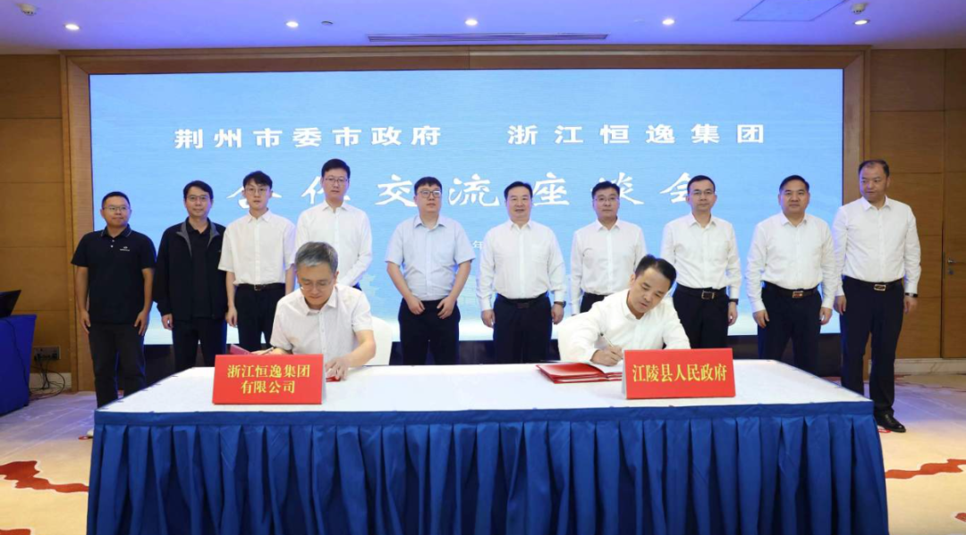 9月20日上午,恒逸集團(tuán)與荊州市江陵縣人民政府簽署年產(chǎn)100萬噸綠色循環(huán)新材料項(xiàng)目投資協(xié)議。荊州市委書記汪元程,市委副書記、市長李迎偉與恒逸石化董事長兼總裁邱奕博座談交流,并共同見證簽約。