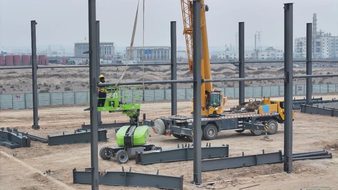 目前,項(xiàng)目各項(xiàng)前期手續(xù)均已辦結(jié)。據(jù)項(xiàng)目總負(fù)責(zé)人邊江介紹,研發(fā)中心與門衛(wèi)室主體結(jié)構(gòu)已完工;生產(chǎn)車間正在進(jìn)行鋼結(jié)構(gòu)安裝;動(dòng)力車間、丙類倉(cāng)庫(kù)等進(jìn)入基礎(chǔ)施工階段;首批儲(chǔ)罐設(shè)備已進(jìn)場(chǎng)開始組裝。一期首條生產(chǎn)線將于明年6至7月完成設(shè)備安裝并產(chǎn)出首批電解液。