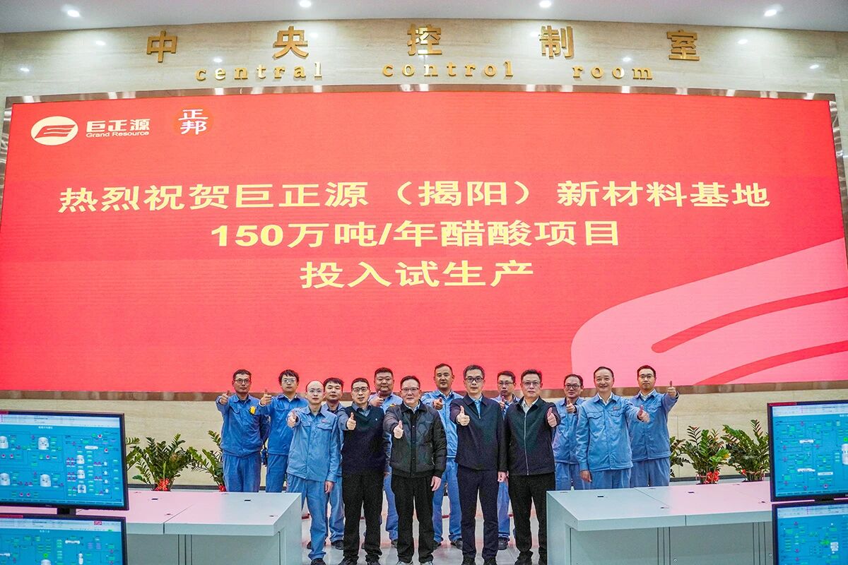 2025年12月31日,巨正源(揭陽)新材料基地150萬噸/年醋酸項(xiàng)目順利完成全部調(diào)試程序,一次引入合成氣成功,打通全流程,正式進(jìn)入試生產(chǎn)階段。廣物控股集團(tuán)黨委委員、副總經(jīng)理孔令灼蒞臨現(xiàn)場(chǎng)指導(dǎo),并對(duì)試車安全工作作出重點(diǎn)部署。