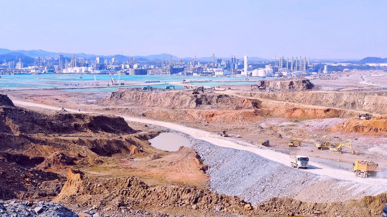 2月18日,湖南省岳陽市云溪區(qū),在中石化湖南石油化工有限公司(以下簡(jiǎn)稱“湖南石化”)年產(chǎn)100萬噸乙烯煉化一體化及煉油配套改造項(xiàng)目建設(shè)現(xiàn)場(chǎng),50多臺(tái)挖掘機(jī)力臂高舉,緊張作業(yè),100多輛運(yùn)輸車來回穿梭,進(jìn)行土石方轉(zhuǎn)運(yùn)。旁邊,1500多畝平整好的土地,已達(dá)到交付標(biāo)準(zhǔn),只等地基作業(yè)設(shè)備進(jìn)場(chǎng)。